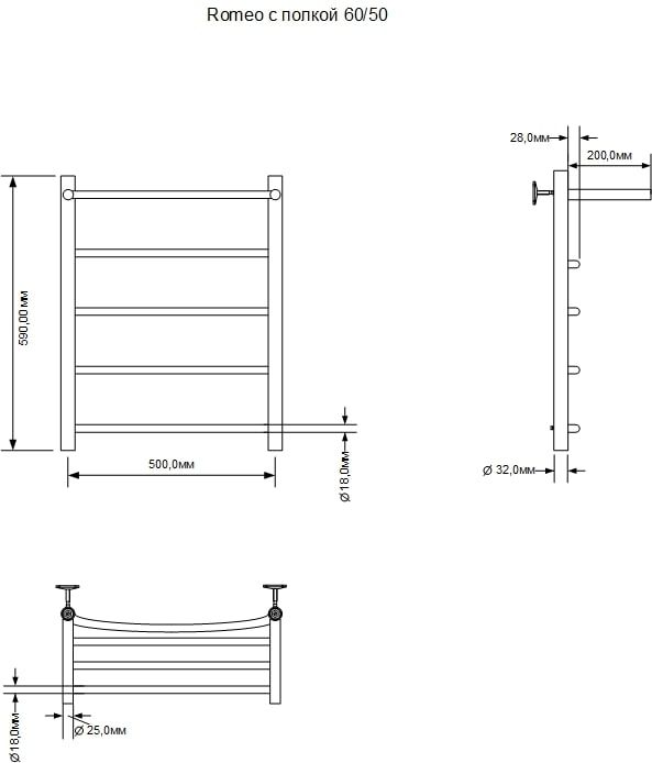 Полотенцесушитель водяной Aquanet Romeo с полкой 600x500 с полкой, хром