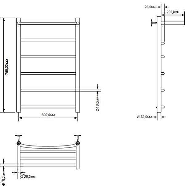 Полотенцесушитель водяной Aquanet Romeo с полкой 800x500 с полкой, хром