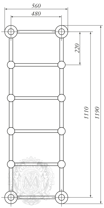 20291 MIGLIORE COLOSSEUM Полотенцесушитель водяной, h1110/1190х480/560 мм., бронза