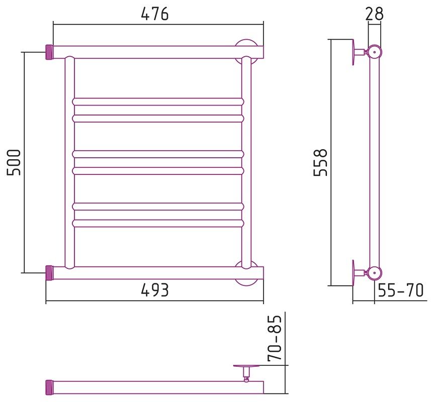 Полотенцесушитель водяной Стилье Минор 0601 50х50 хром
