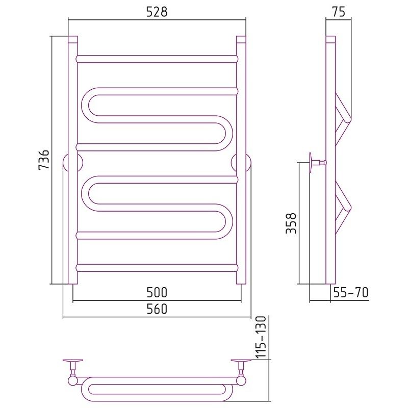 Полотенцесушитель водяной Стилье Универсал-51 80х50 хром