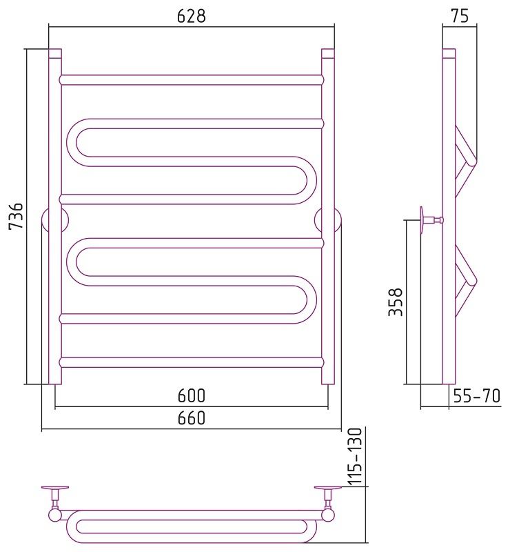 Полотенцесушитель водяной Стилье Универсал-51 80х60 хром