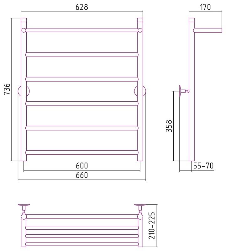 Полотенцесушитель водяной Стилье Универсал-54 80х60 с полкой, хром