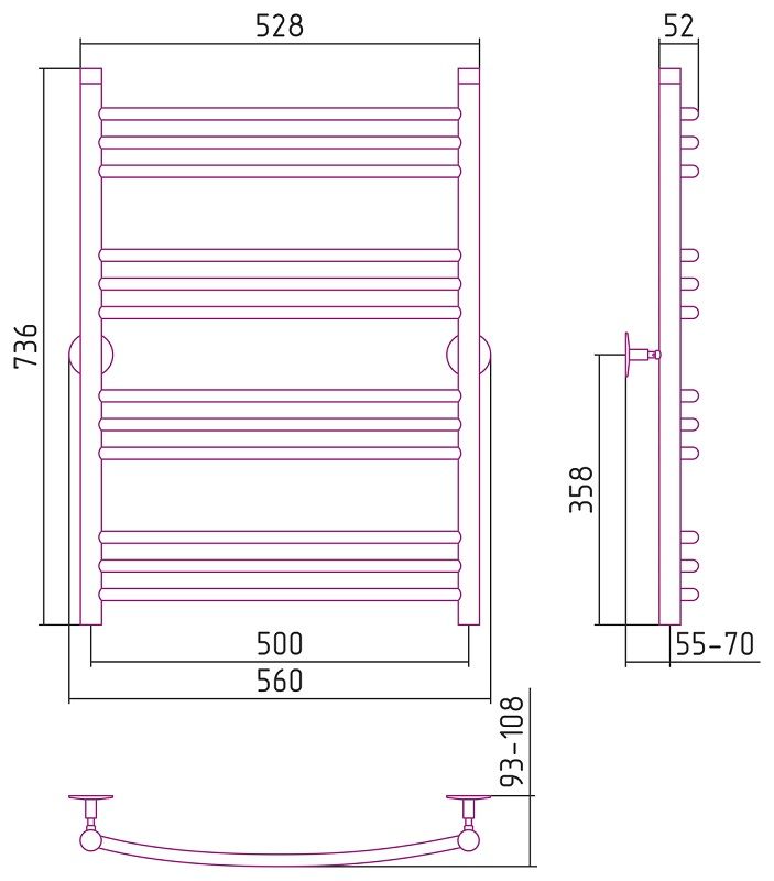 Полотенцесушитель водяной Стилье Универсал-58 80х50 хром