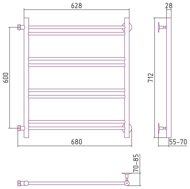 • Полотенцесушитель упакован в полиэтиленовый пакет и коробку из гофрокартона