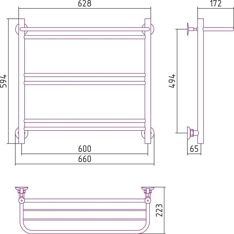 Полотенцесушитель водяной Стилье Версия-Н1 60х60 с полкой, хром