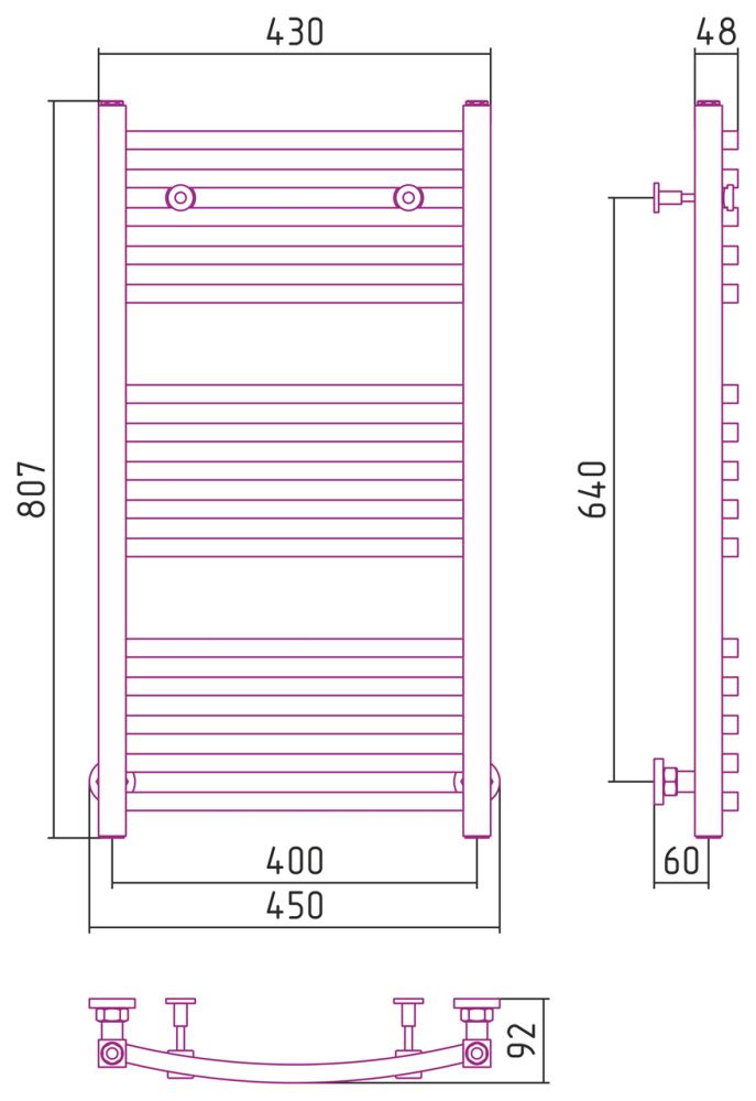 Полотенцесушитель водяной Сунержа Аркус 020-0251-8040 800x400 шампань
