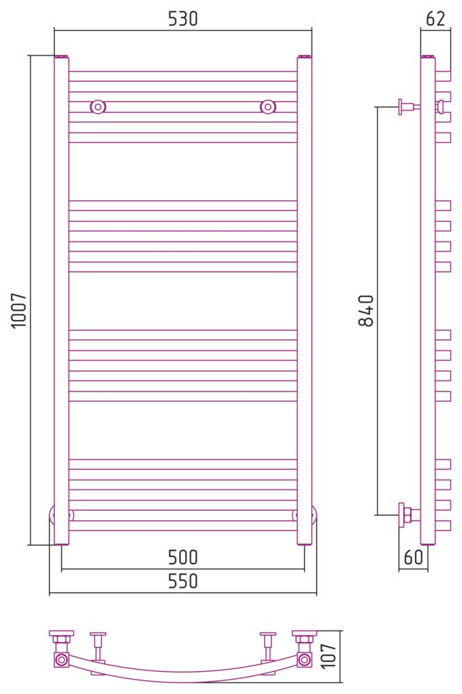Полотенцесушитель водяной Сунержа Аркус 31-0251-1050 1000x500 черный матовый
