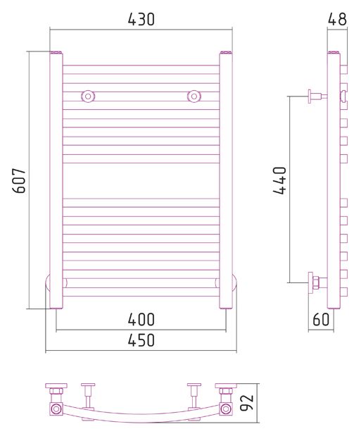 - Внешние габариты (высота х ширина х глубина) (мм)607х450х92