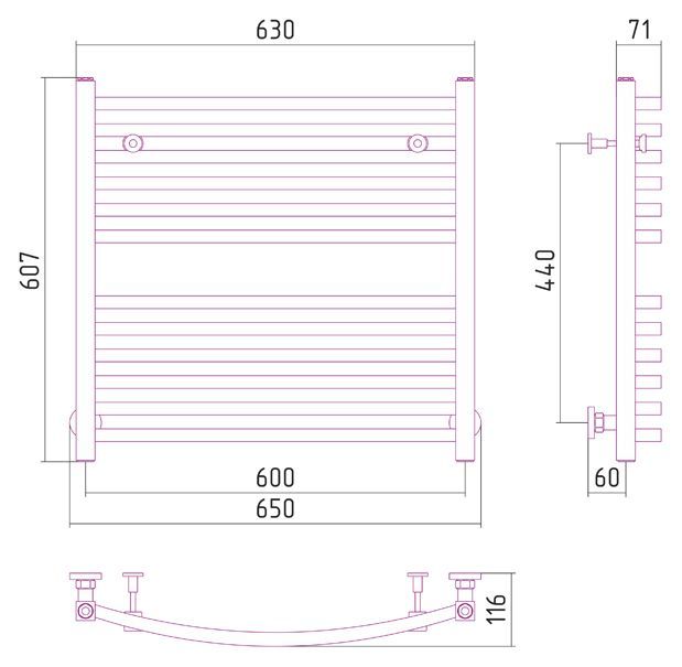 - Внешние габариты (высота х ширина х глубина) (мм)607х650х116