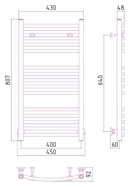 - Внешние габариты (высота х ширина х глубина) (мм)807х450х92