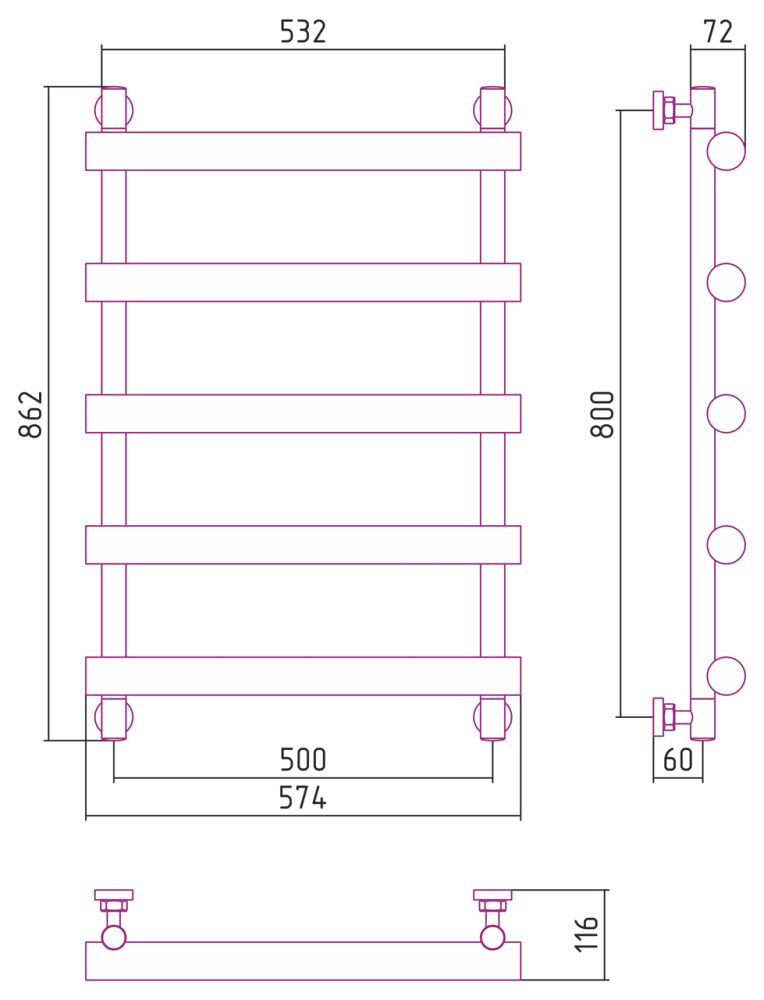 Полотенцесушитель водяной Сунержа Атлант 30-0226-8050 800x500 белый матовый