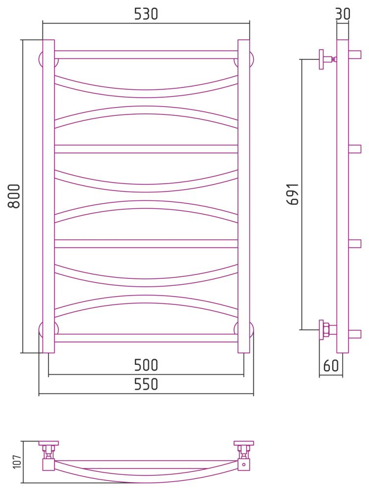 Полотенцесушитель водяной Сунержа Ажур 051-0255-8050 800x500 состаренная латунь