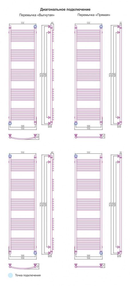 - - диагональное подключение Y (мм)1926