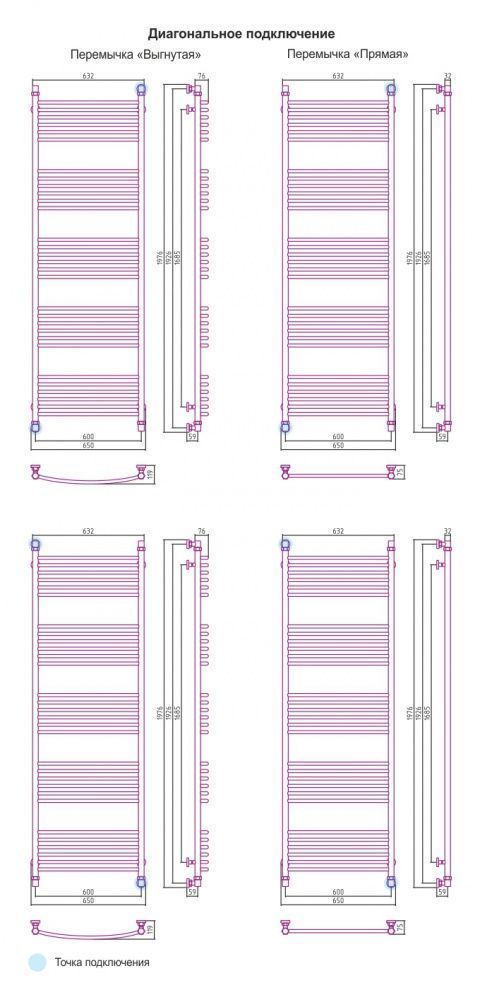 - - диагональное подключение Y (мм)1926