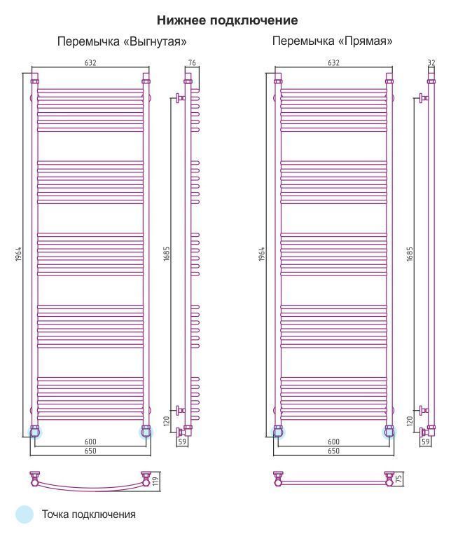 - - нижнее подключение X (мм)600