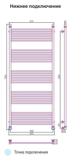 - - нижнее подключение X (мм)800