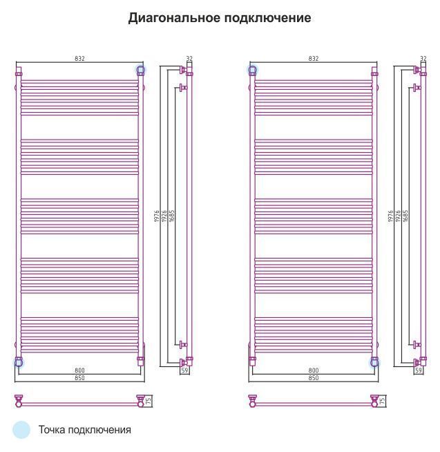 - - диагональное подключение Y (мм)1926