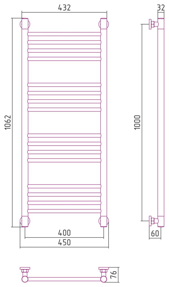 Полотенцесушитель водяной Сунержа Богема+ прямая 03-0220-1040 1000x400 золото