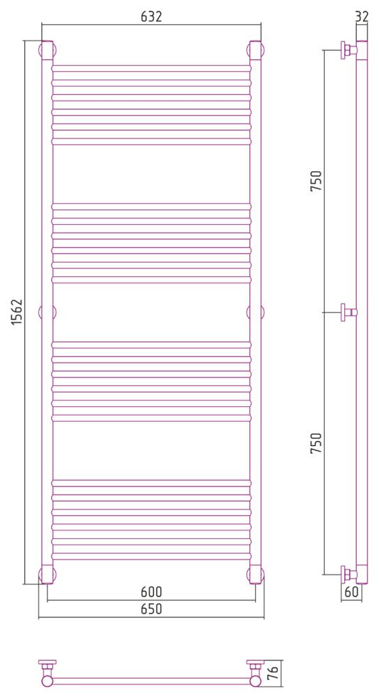 Полотенцесушитель водяной Сунержа Богема+ прямая 12-0220-1560 1500x600 белый