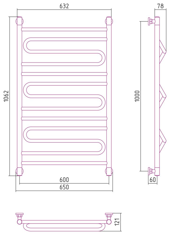 Полотенцесушитель водяной Сунержа Элегия+ 00-0205-1060 1000x600 без покрытия