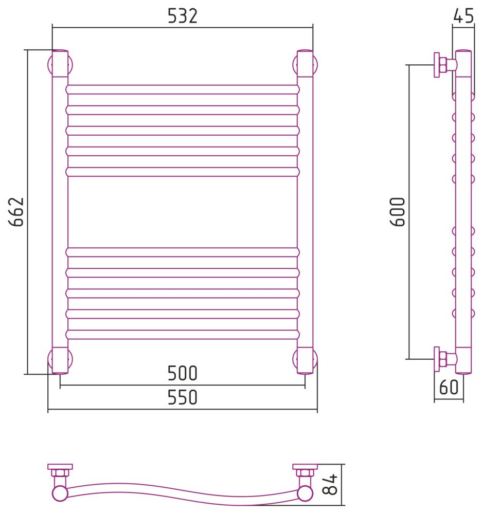 Полотенцесушитель водяной Сунержа Флюид+ 00-0222-6050 60х50 хром