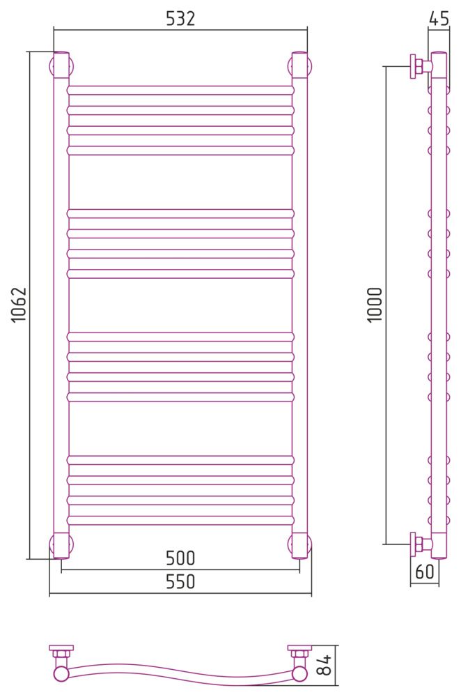 Полотенцесушитель водяной Сунержа Флюид+ 31-0222-1050 1000x500 черный матовый