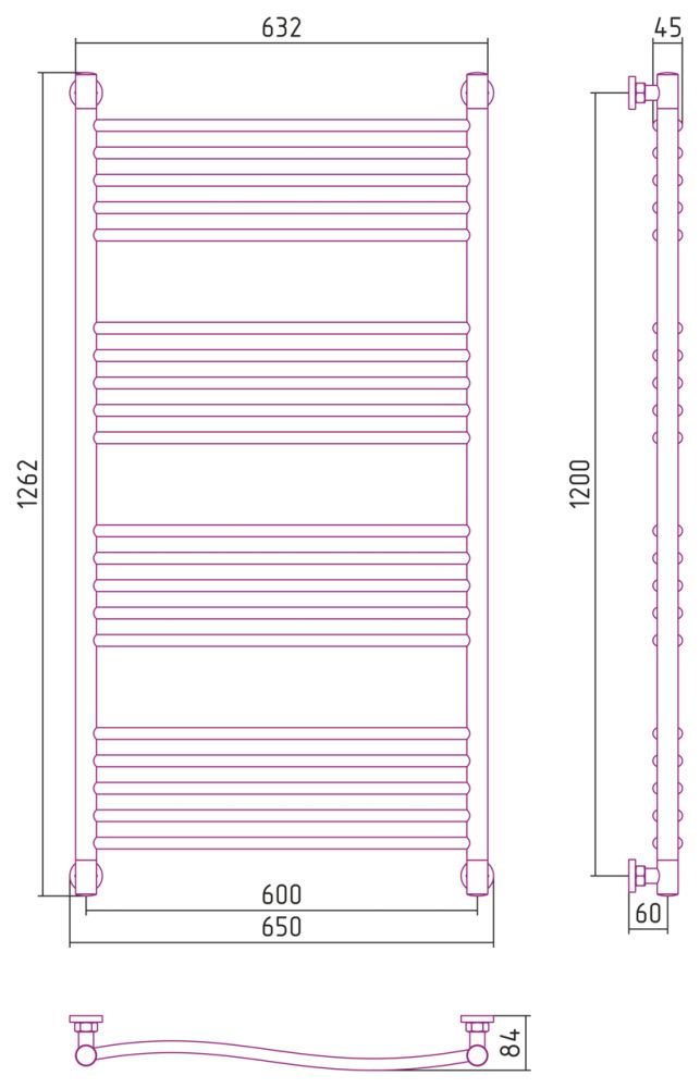 Полотенцесушитель водяной Сунержа Флюид+ 31-0222-1260 1200x600 черный матовый