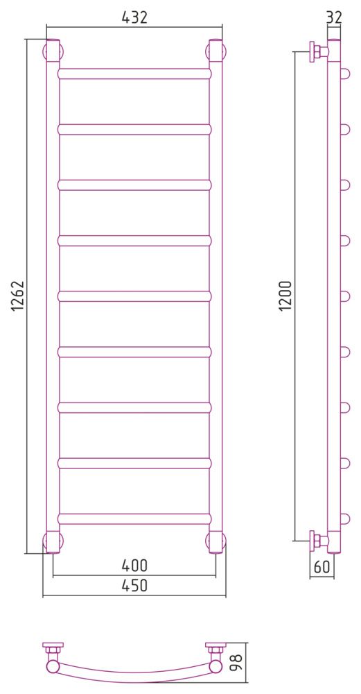 Полотенцесушитель водяной Сунержа Галант+ 051-0200-1240 1200x400 состаренная латунь