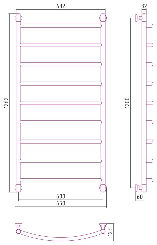 Полотенцесушитель водяной Сунержа Галант+ 071-0200-1260 1200x600 сатин