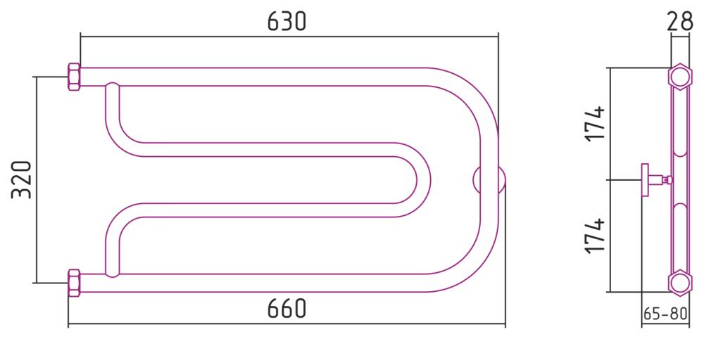 Полотенцесушитель водяной Сунержа Гусли 00-4009-3265 320x650 без покрытия
