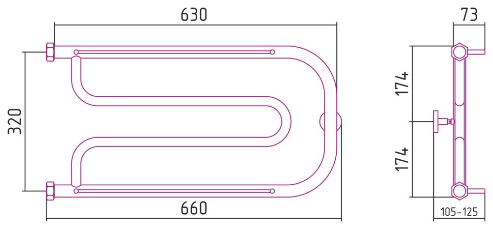 Полотенцесушитель водяной Сунержа Гусли 00-4010-3265 320x650 без покрытия