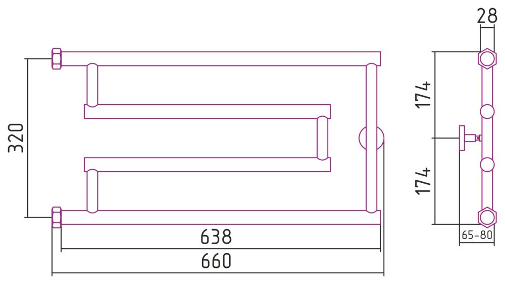 Полотенцесушитель водяной Сунержа High-Tech 071-0051-3265 320x650 сатин