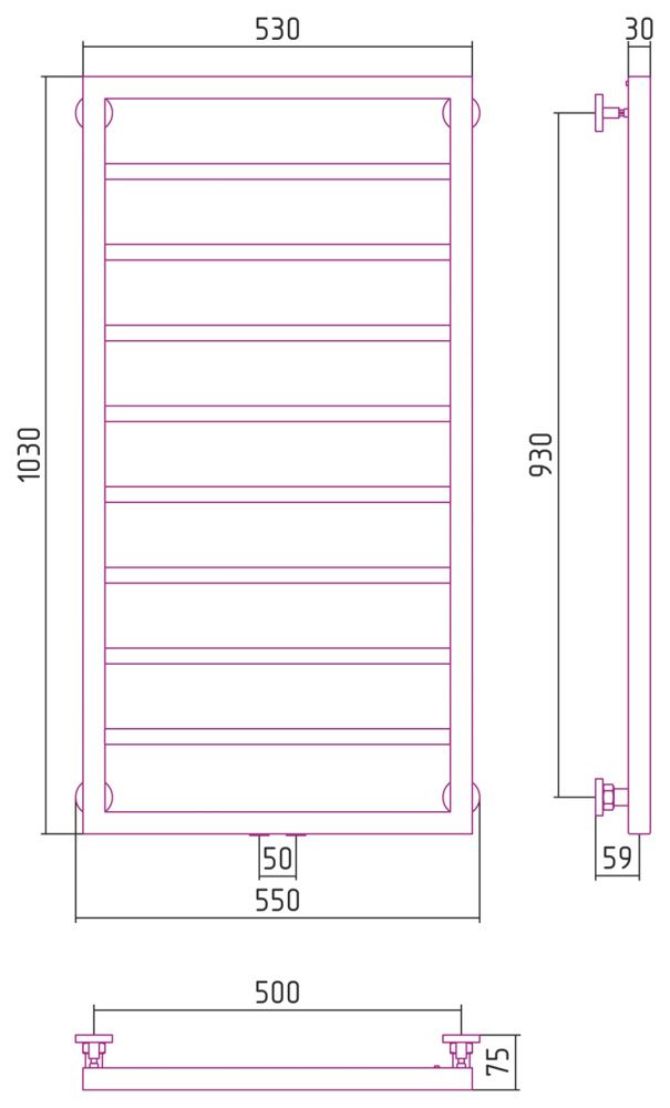 Полотенцесушитель водяной Сунержа Канцлер 30-0254-1050 1000x500 белый матовый