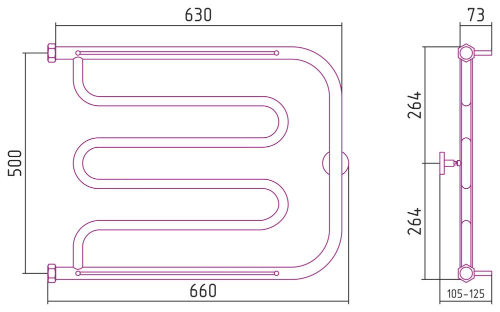 Полотенцесушитель водяной Сунержа Лира 00-4012-5065 500x650 без покрытия