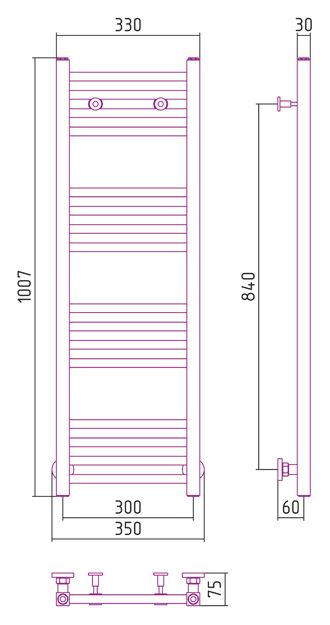 - Внешние габариты (высота х ширина х глубина) (мм)1007х350х75
