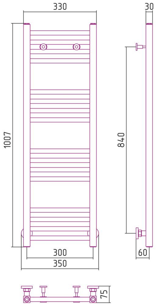 Полотенцесушитель водяной Сунержа Модус 12-0250-1030 1000x300 белый