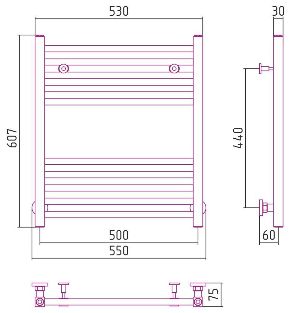 Полотенцесушитель водяной Сунержа Модус 31-0250-6050 600x500 черный матовый