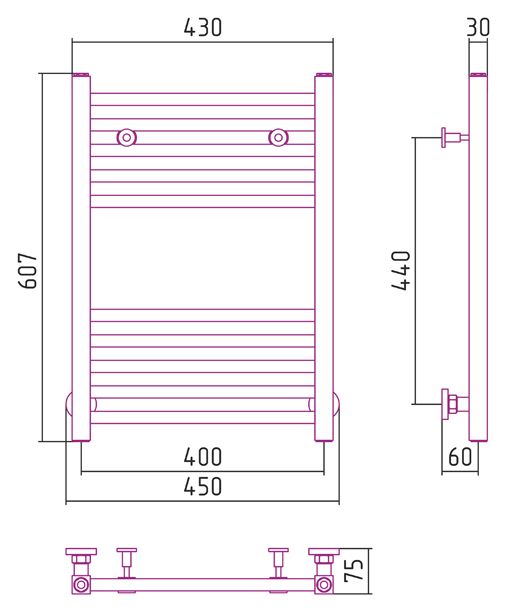 - Внешние габариты (высота х ширина х глубина) (мм)607х450х75