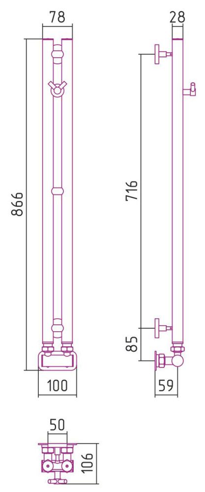 Полотенцесушитель водяной Сунержа Нюанс EU50+ 020-0212-0840 840x50 шампань