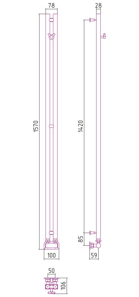 Полотенцесушитель водяной Сунержа Нюанс EU50+ 03-0212-1545 1545x50 золото