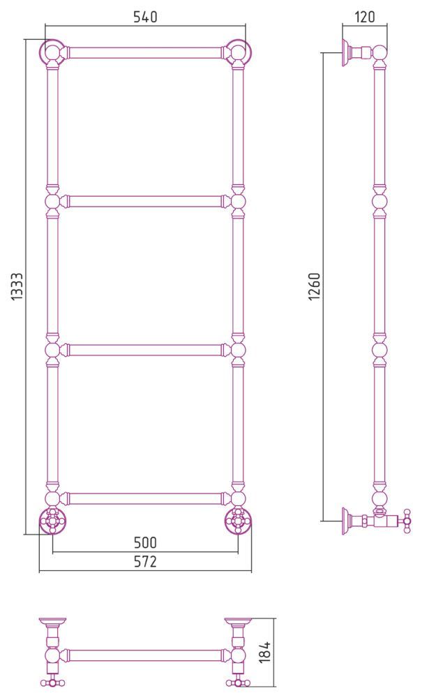 Полотенцесушитель водяной Сунержа Ренессанс 00-0280-1250 1260x500 без покрытия