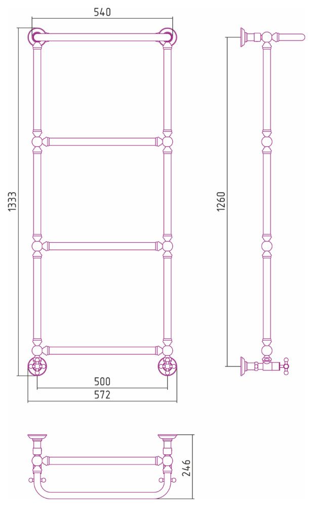 Полотенцесушитель водяной Сунержа Ренессанс 00-0281-1250 1260x500 без покрытия