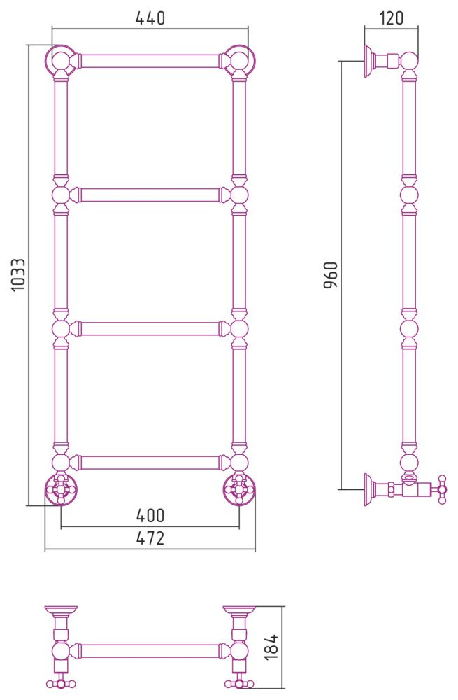 Полотенцесушитель водяной Сунержа Ренессанс 051-0280-9640 960x400 состаренная латунь