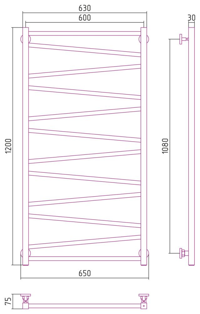 Полотенцесушитель водяной Сунержа Сирокко 00-0253-1260 1200x600 без покрытия