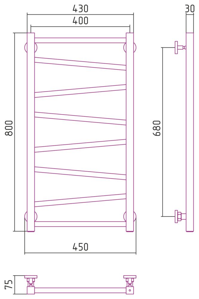 Полотенцесушитель водяной Сунержа Сирокко 071-0253-8040 800x400 сатин