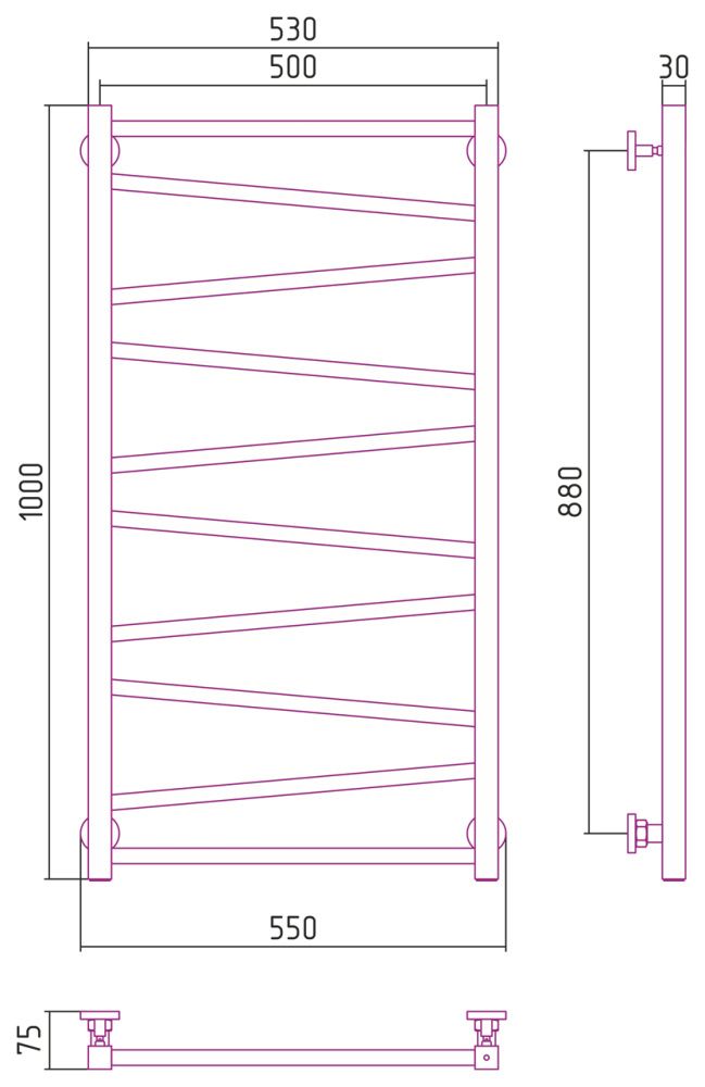 Полотенцесушитель водяной Сунержа Сирокко 31-0253-1050 1000x500 черный матовый