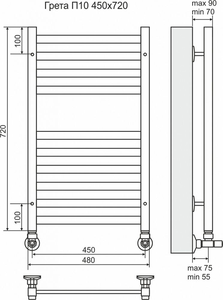 Полотенцесушитель водяной Terminus Грета П10 450х720 хром