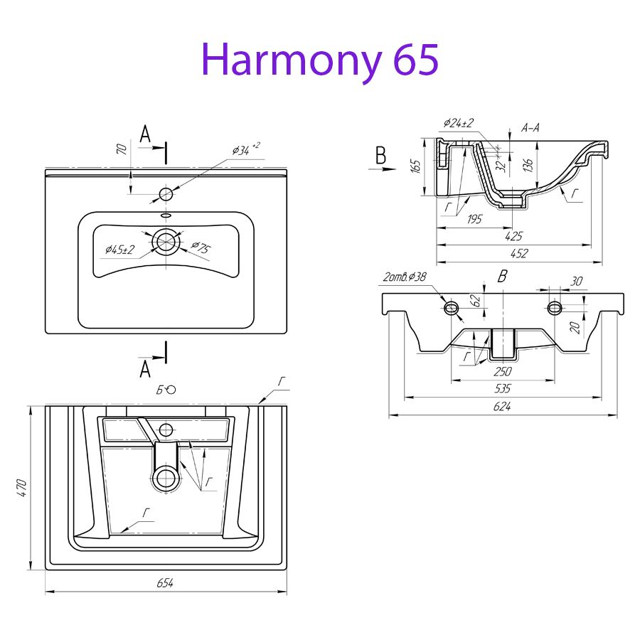 - Умывальник мебельный MYJOYS Harmony 65, белая (640214)