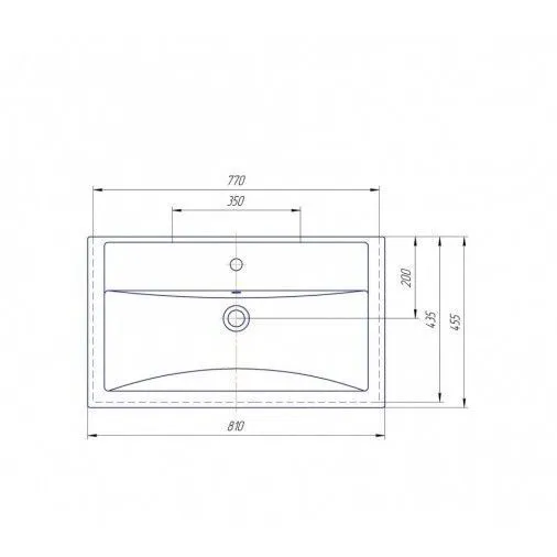- Размер ШхГ: 810х455 мм. Одно отверстие под смеситель. Материал: керамика.